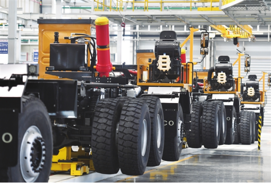 在这座工厂里,有总分支线体70余条,搭载了40余项行业领先或首次运用的先进制造技术,其中自动合车机器人等技术更是太重自主研发,在行业内独一无二。装调工部副部长刘毓说:“车间里配备的智能轮装配机器人,通过3D视觉引导和柔性夹具技术,可以完成复杂工艺的精确装配。在传统装配模式下,两人操作装一台车大概需要一个小时,而现在机器人自动装配,工作效率提升了60%。”如今,在智能制造的加持下,自动组队、机器焊接、工件转运、来料抓取等工序,工人们只需按下操作键就能操作。太重集团也因此成为全球唯一能够同时生产4至75立方米矿用挖掘机和0.8至400吨级全系列多动力液压挖掘机的研发制造基地,年产各类型挖掘机达到5万台,实现了产品的升级和质量的飞跃。